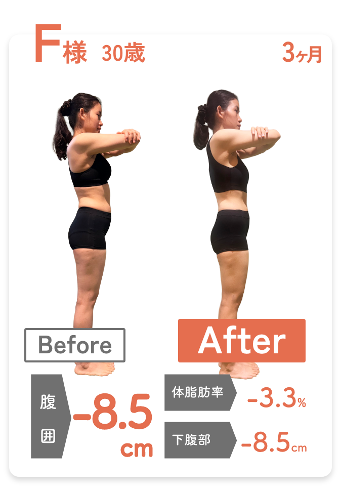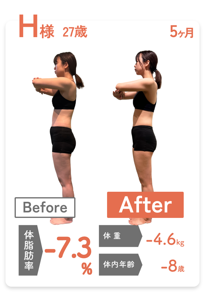 A. 最大の違いはダイエットに特化している所です!ダイエットとは、ただ体重を落とすだけではなく、筋肉量を維持向上しながら、体脂肪を適正に落としていくことです。大切なことは、短期減量ではなく、その後もずっと綺麗な体型で、太りにくい体質になることです。